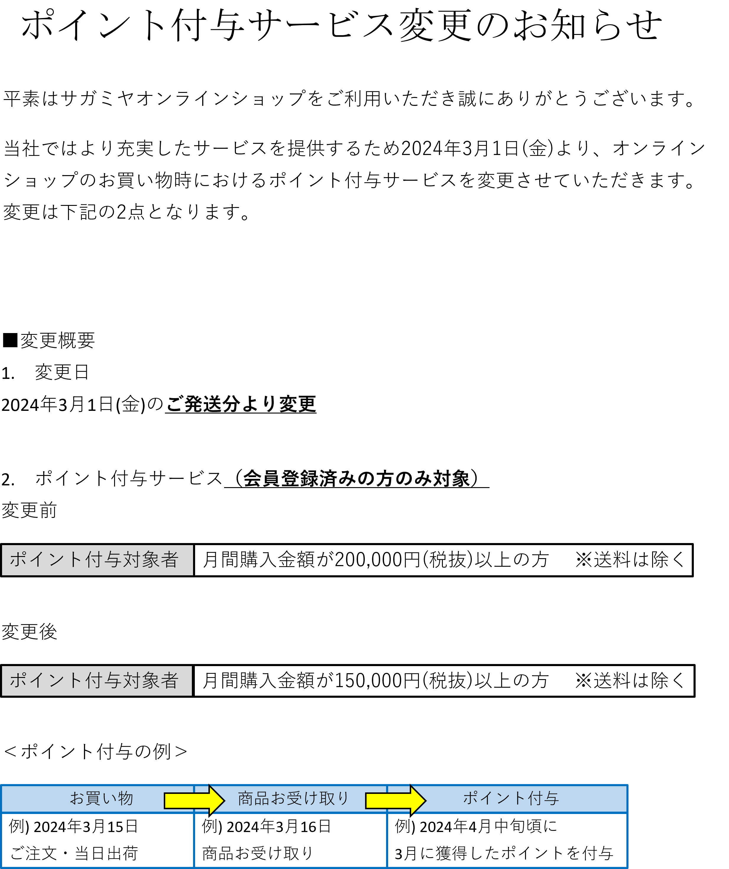 ポイント付与サービス変更のお知らせ